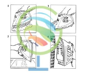 - Turn the thermostat knob to the maximum position and hold the iron a short distance from the fabric to be ironed while pressing the steam control button.